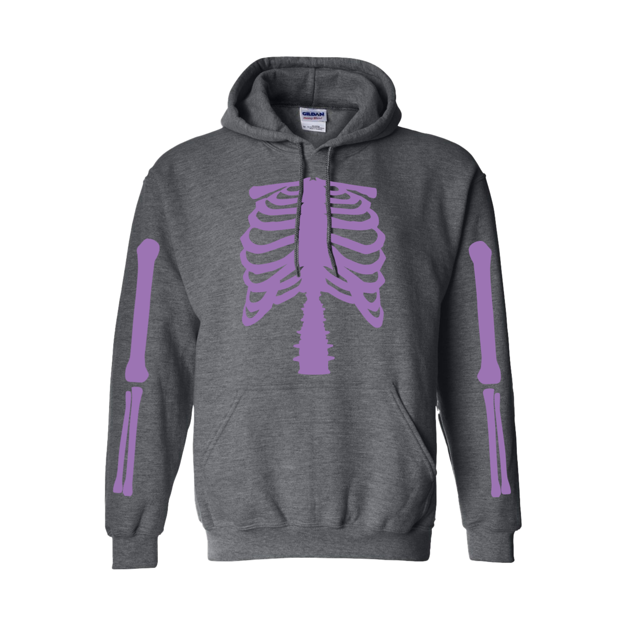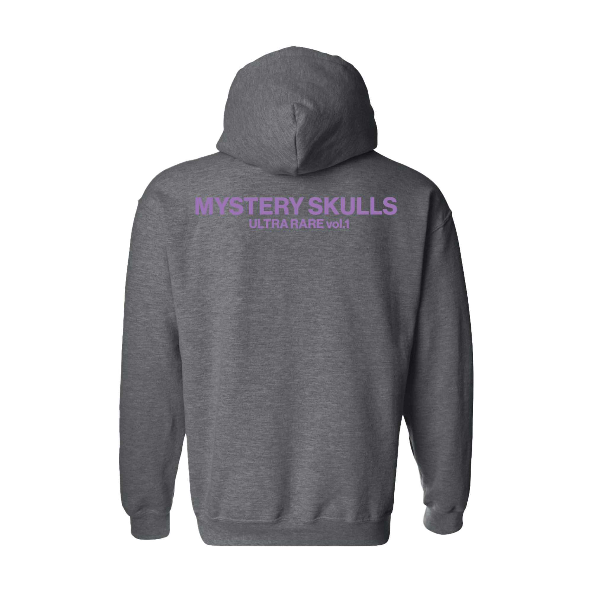 Purple skeleton pullover hoodie, with Mystery Skulls logo and Ultra Rare vol.1 on the back